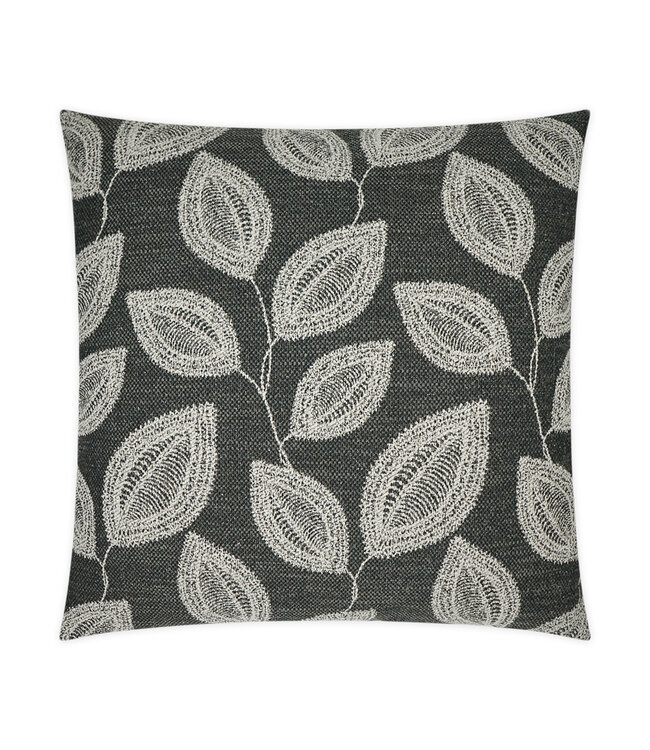 This beautifully woven leaf pillow adds a refined, nature-inspired touch to your home. The bold botanical motif in soft ivory pops against a deep charcoal background, creating an effortless statement that layers seamlessly with both modern and classic interiors.