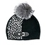 Mitchies Matchings Animal Print Hat w/ Metal Buckle & Fox Pom Black Mix