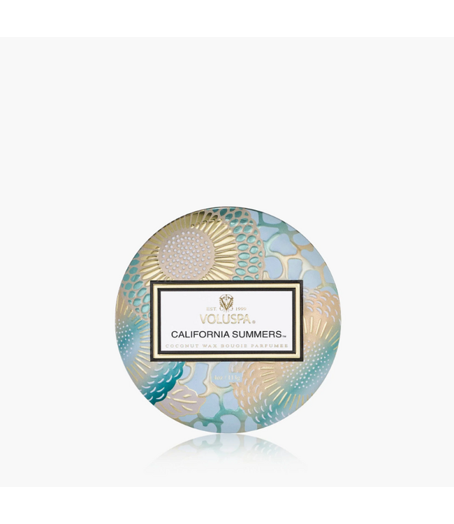 Bright, clean, and easy to take anywhere, the Voluspa California Summers mini tin candle brings a fresh, coastal-inspired fragrance into your everyday. Notes of citrus and airy elements create a light, uplifting scent that instantly refreshes your space.