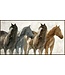 A striking watercolor depiction of four horses in a soft, neutral palette. This captivating artwork blends earthy tones and fluid brushstrokes, creating a serene yet powerful moment of unity and grace. Perfect for adding a touch of rustic sophistication t