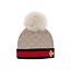 his Knitted Hat w/ Embroidered Bee & Fox Pom blends warmth, style, and a touch of luxury. The soft beige knit offers a neutral, wearable base, while the bold stripe band and embroidered bee detail add a designer-inspired finish. Topped with a plush real fox-fur pom, this winter hat brings instant charm to any cold-weather look. Cozy, chic, and effortlessly giftable.