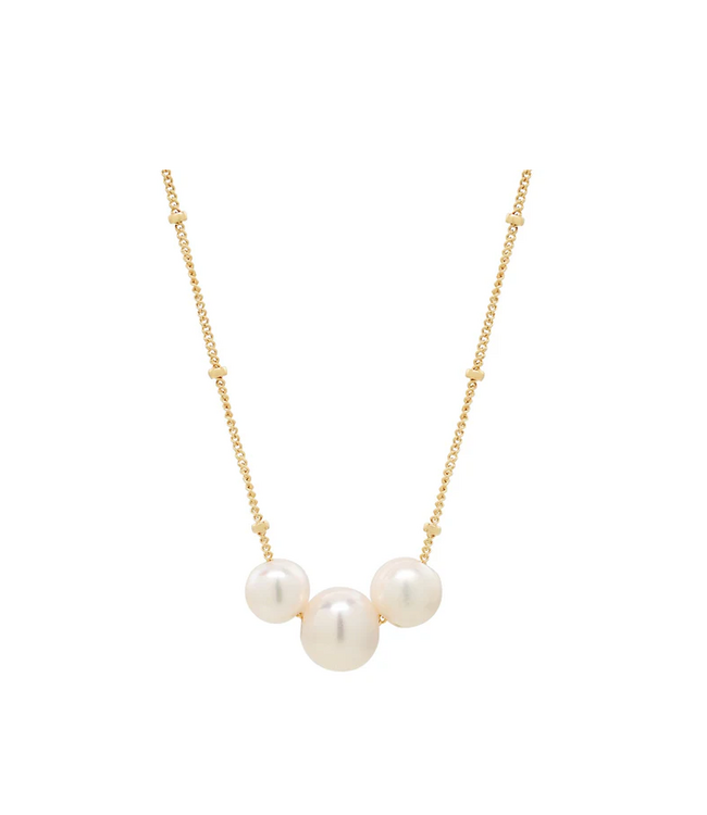 Simple, refined, and endlessly wearable, this triple pearl necklace showcases three glowing pearls centered on a delicate gold chain. Elegant on its own and beautiful layered, it’s the kind of piece you’ll reach for every day.