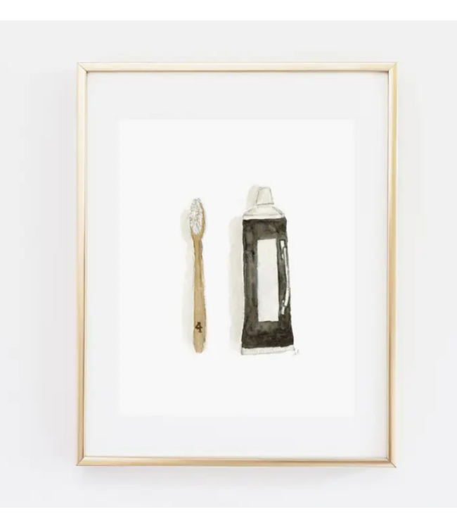 Display this cheerful toothbrush & toothpaste print in your bathroom as a gentle reminder.