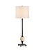 The Dempsey Buffet Lamp offers a timeless blend of elegance and modern refinement. A slim bronze-finished stem rises from a sleek square base, accented by a sculptural ceramic sphere that adds warmth and texture. The clean white drum shade softens the light, making this lamp ideal for creating an inviting glow on sideboards, consoles, dining buffets, or entry tables. Its balanced proportions and upscale materials make it a versatile statement piece for any room.