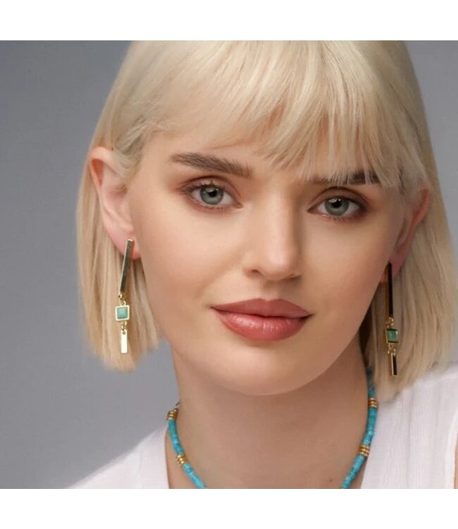 The Double Decker Drops in Kingman Turquoise bring a fresh, modern edge to statement jewelry. Designed with clean, geometric lines and a stacked silhouette, these earrings create subtle movement while maintaining a refined feel. The vibrant turquoise center adds a natural pop of color, making them an easy standout for both everyday wear and elevated looks.