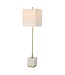 This versatile buffet lamp showcases a slim plated brushed brass metal base accented by a large white marble block foot with natural veining. The square hardback shade is covered in a slubbed white linen fabric.