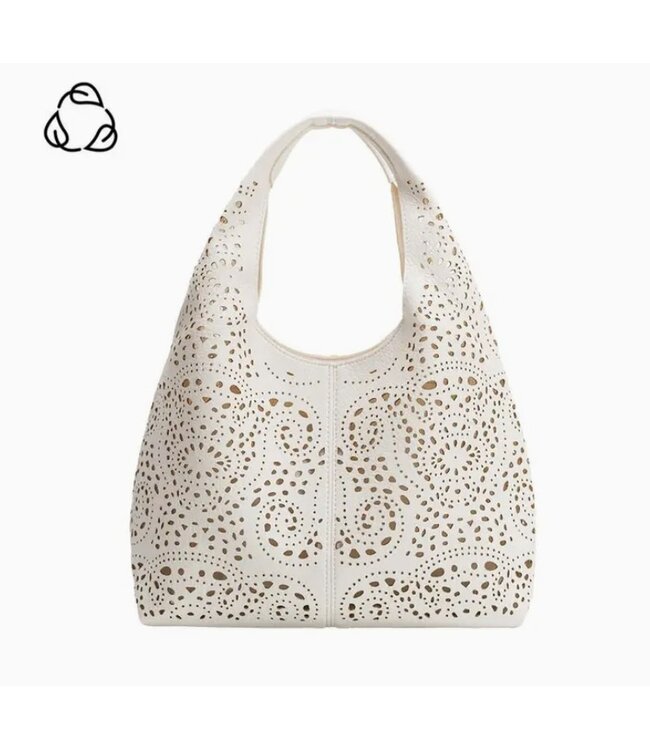 The ivory colorway gives it a fresh, elevated feel that pairs effortlessly with denim, soft neutrals, black, and seasonal prints. Signature laser-cut detailing and gold-tone hardware add subtle visual interest while keeping the overall look sleek and timeless.