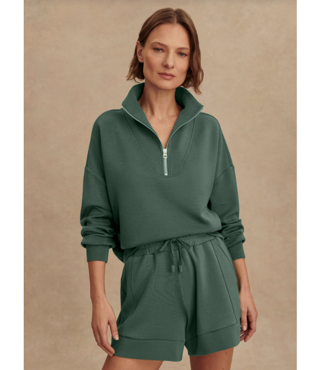 This green half-zip pullover is the perfect blend of comfort and polish. Featuring a modern collar, relaxed shape, and soft elevated fabric, it’s an easy staple for laid-back days that still look put together. Pair it with matching shorts or your favorite denim for effortless style.