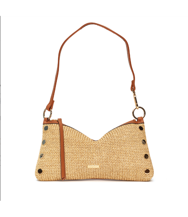 Fresh, modern, and incredibly versatile, the Kyle Raffia bag is designed to move effortlessly from day to night. Its relaxed slouchy silhouette gives it a current feel while the compact shape keeps it easy to carry wherever the evening takes you.