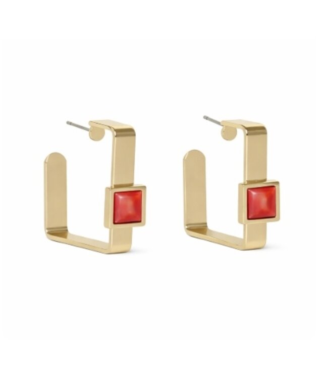 A modern twist on the classic hoop, the Sandra Squares feature a clean, geometric silhouette with a vibrant Apple Coral inset. Designed to stand out while remaining effortlessly wearable, these earrings bring just the right amount of color and structure to your summer wardrobe.