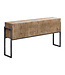 A clean contemporary accent, featuring mahogany solids with mindi veneer, finished in a hand applied light oatmeal wash. Veneer is applied in a layered fashion, creating the varying grain patterns on the body, set into an aged iron frame.