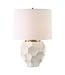 Modern and sculptural, this Uttermost table lamp makes a striking statement with its geometric, faceted base. The textured surface adds depth and dimension, while the soft neutral finish keeps the look refined and versatile.