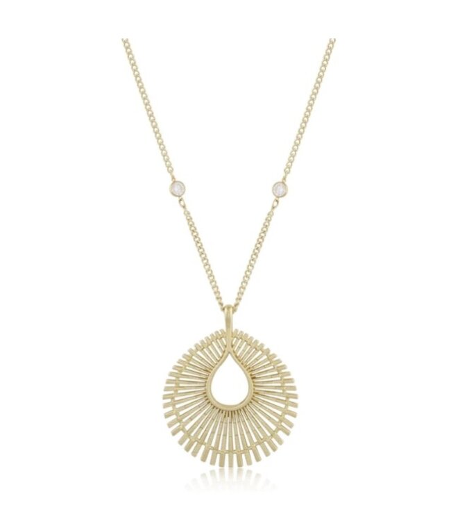 Striking, sculptural, and effortlessly chic, this L. George sunburst pendant necklace is designed to make an impression. The bold pendant features radiant linear detailing that creates beautiful dimension and texture, giving the piece an elevated, artful feel. Suspended from a clean, modern chain, it offers the perfect balance of statement and sophistication. Beautiful worn on its own or layered with other favorites, it adds instant polish and personality to both casual and dressed-up looks. It’s the kind of necklace that transforms even the simplest outfit.