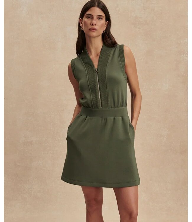 Sleek, flattering, and effortlessly modern, the Varley Polyanna Dress in Thyme is designed for women who want comfort without sacrificing style. This sporty-chic mini features a clean sleeveless silhouette, a polished zip-front neckline, and ribbed trim detailing that gives it a refined, elevated edge. The softly structured fit creates an easy, flattering shape, while side pockets add everyday practicality. Whether styled with sneakers for daytime or dressed up with sandals and accessories, it’s the kind of versatile piece that works hard in your wardrobe while still looking completely put together.