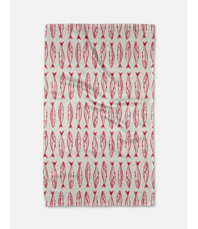 The Geometry Fish Print Kitchen Towel brings a fresh coastal feel to your kitchen with its bold red fish pattern and clean, graphic design. It’s the perfect blend of playful style and elevated simplicity.