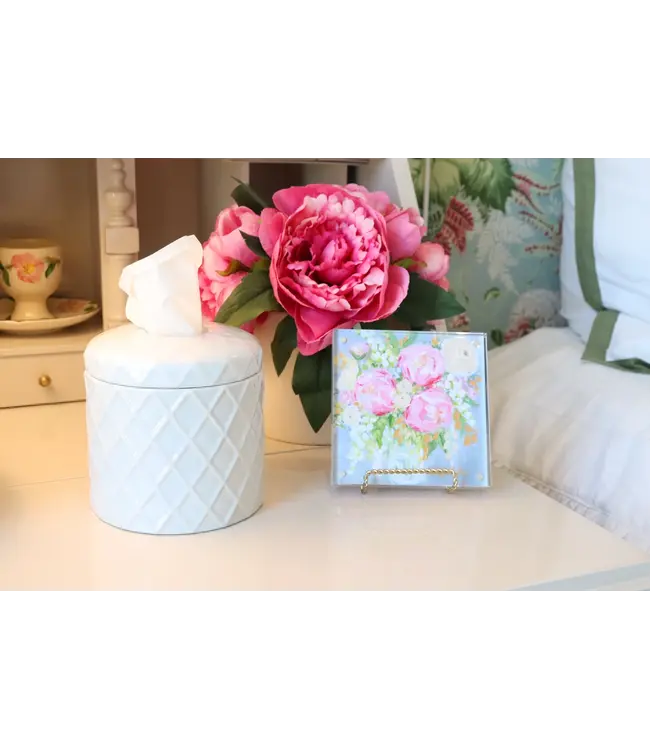 With her soft white glaze and elegant quilted texture, Chloe transforms an everyday essential into a beautiful accent for powder rooms, bedside tables, coffee tables, or styled shelving.