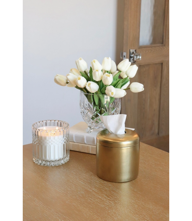 Crafted to conceal standard tissue boxes, Coco blends modern elegance with everyday function. Its clean cylindrical silhouette and warm metallic tone make it a versatile accent for bedrooms, powder rooms, coffee tables, and styled shelving.