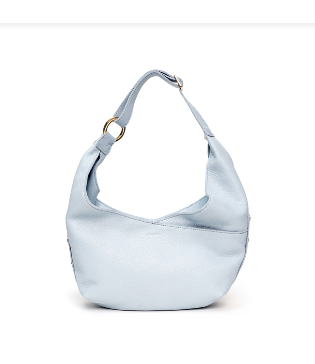 Sleek, modern, and effortlessly stylish, this Hammitt shoulder bag in hazy blue offers a fresh take on everyday luxury. Crafted from supple pebbled leather, the softly curved silhouette creates a relaxed yet refined look that pairs beautifully with both casual and elevated outfits.