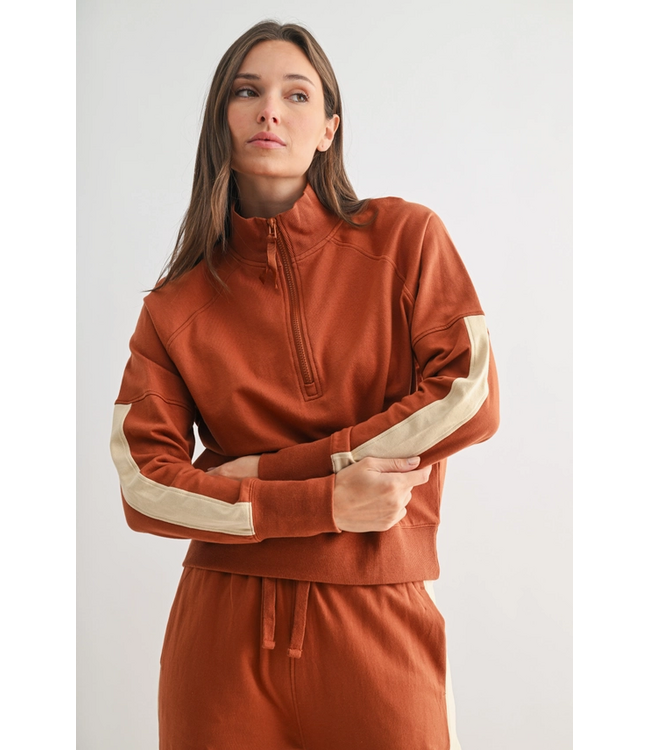Varsity Stripe Cotton Pullover Brick/Oyster Grey