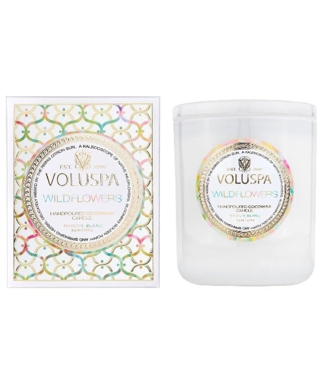 You've been called to dance among the wildflowers, losing yourself in the beauty of this unruly floral sea. Lightly pass your hand over a kaleidoscope of Native Wildflowers, blooming Golden Poppy, Ambrosia and springing Herbs; sugared by misty vapors of Blue Agave and delicately kissed by the rising Citron sun. Gently coax this fragrant super bloom of Voluspa's Wildflowers.